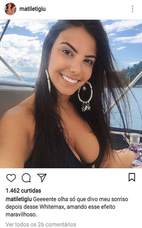 Resultado final da Fernanda após o uso do famoso WhiteMax. Foto: Reprodução