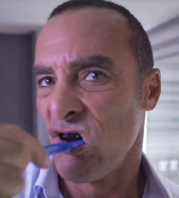 Paulo Zulu sorrindo enquanto usa o WhiteMax. Foto: Reprodução